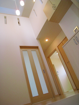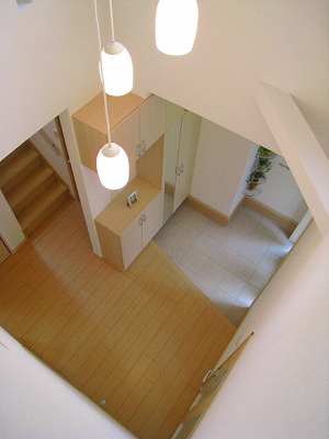玄関を入るとすぐに吹き抜けの開放感ある空間が